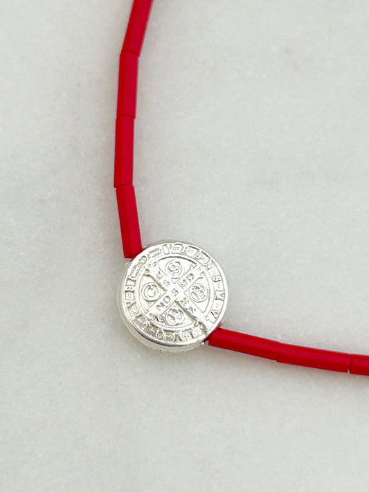 Pulsera Hilo Ajustable de Mostacillas Miyuki + San Benito Plata 925